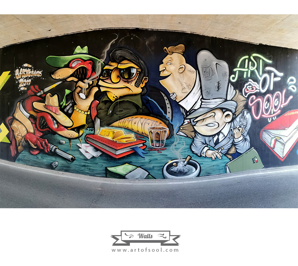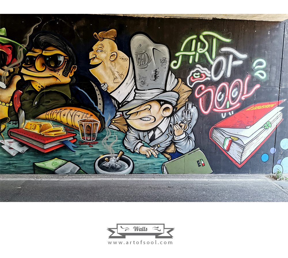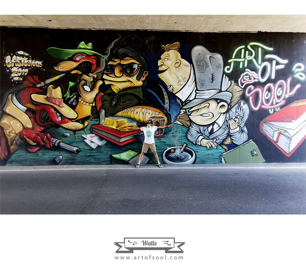 A wall about Mafia during a Graffiti Jam by Artcore Crew in Castegnato (BS)